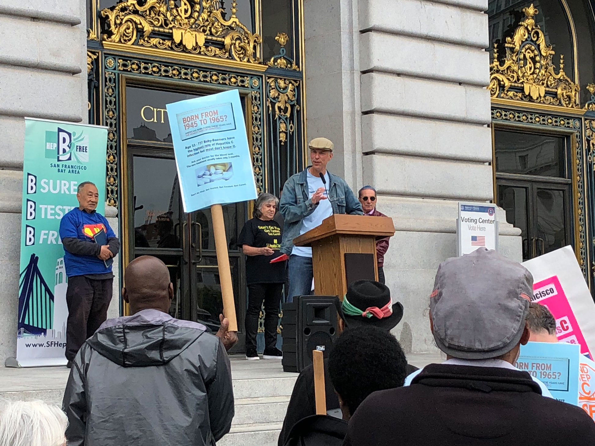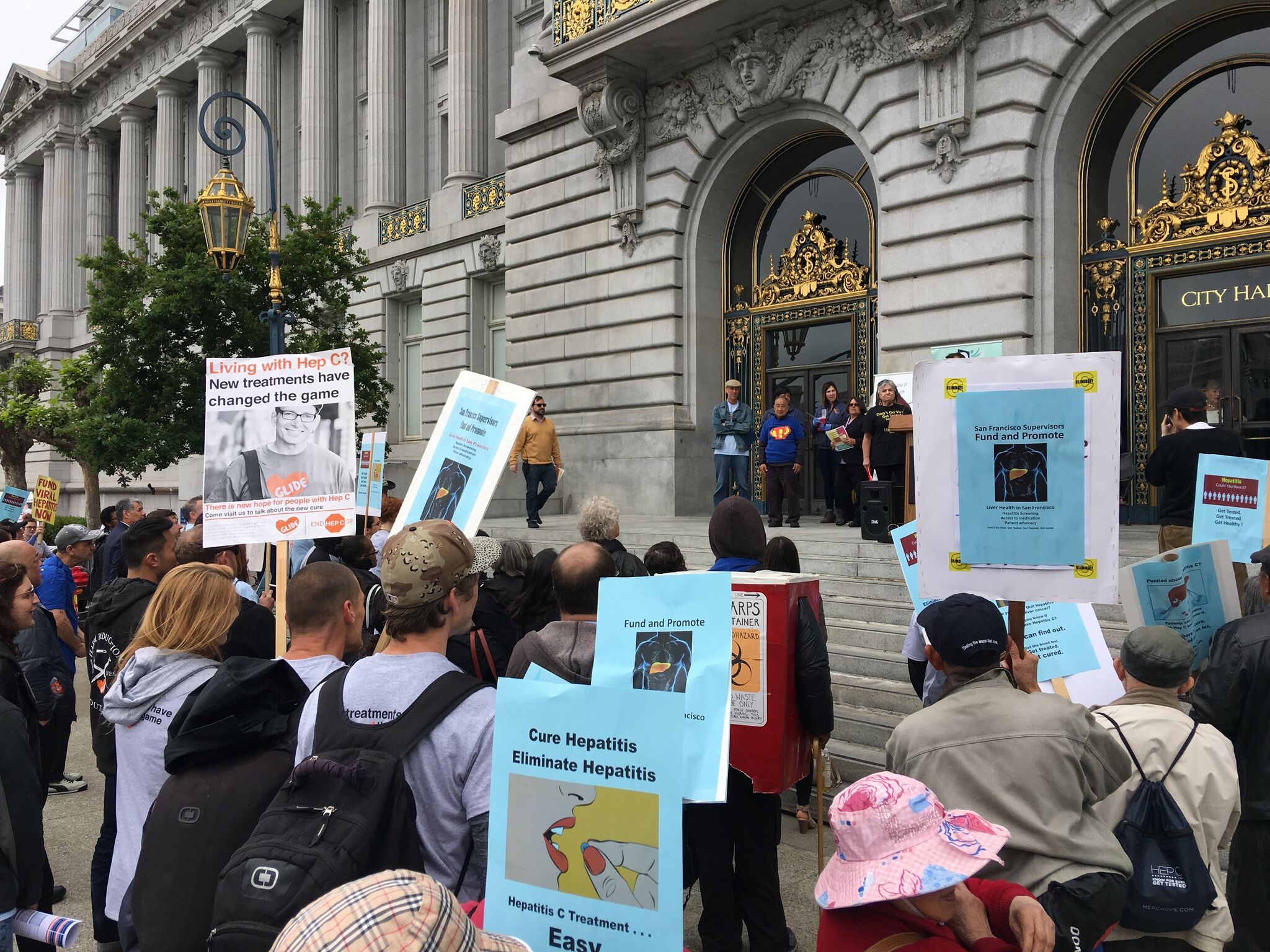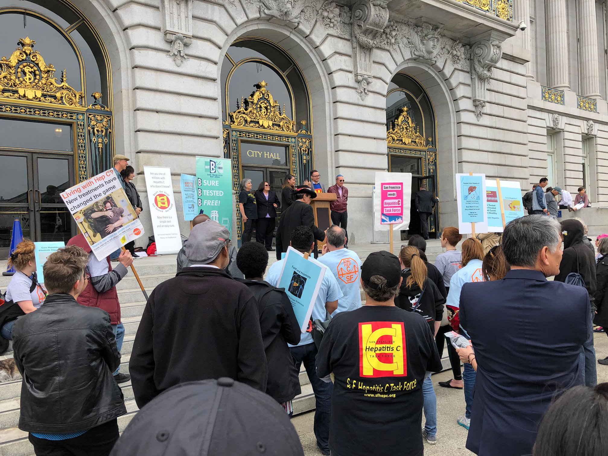 We had an excellent turnout at the rally on May 18th! We debuted the new mobile DeLiver Care van from UCSF and ten people received free hep C testing. Thanks so much to everyone that came out to represent, especially to our speakers – Dr. Andrew Desruisseau of Health Right 360, Tom Ammiano (who also got tested), Barbara Garcia, and Katy Tang – and to our clients. Thanks also to Robin Roth from San Francisco Hepatitis Task Force and Arcadi Kolchak from San Francisco Hep B Free – Bay Area for hosting and organizing. And congratulations to Pauli Gray of San Francisco AIDS Foundation and Richard Ow on their well-deserved community advocate achievement awards!